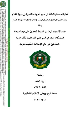 كردة الجنة, (2012) فعالية استخدام البطاقة فى تعليم العبارات القصيرة فى مهارة الكلام )دراسة تجريبية في الفصل السا بع في المدرسة الإعدادية الإسلامية الحكومية 2 شربون(. Bachelor thesis, IAIN Syekh Nurjati Cirebon.