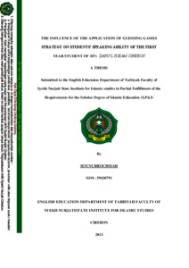 SITI NURROCHMAH, (2013) THE INFLUENCE OF THE APPLICATION OF GUESSING GAMES STRATEGY ON STUDENTS’ SPEAKING ABILITY OF THE FIRST YEAR STUDENT OF MTs DARU’L HIKAM CIREBON. Bachelor thesis, IAIN Syekh Nurjati Cirebon.