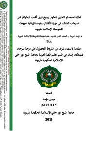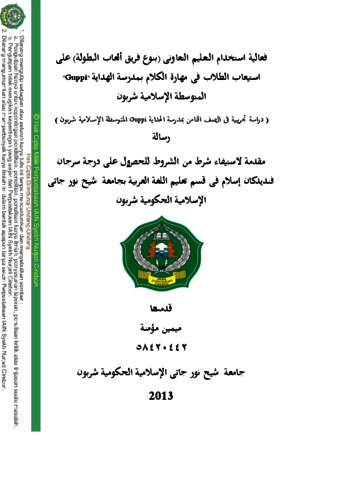 : ميمين مؤمنة أن الطلاب فى مدرسة الهداية جوفى المتوسطة الاسلامية شريون هم يستطيعون أن يكتبوا ولكنهم لايستطيعون أن يتكلموا مع بعضهم باللغة العربية جيدا. وأن هذه المشكلة بسبب كثيرة منها يعتقدون أن اللغة العربية أصعب من اللغة الأجنبية الأخرى فى تعلم مهارة الكلام لذالك نتائجهم فى التدريبات اليومية أو فى الاختبارات لاتناسب بالغاية المرجوة و أنّ الطريقة التى يستخدمها المعلم غير جذابة. وطريقة التدريس التى تظن بها تقدر على استيعاب الطلاب لتعليم اللغة العربية خصوصا فى تعليم مهارة الكلام وهي تعليم لأن تعليم التعاونى )بنوع فريق ألعاب البطولة ) .) Teams Games Tournament)TGT( التعاونى )بنوع فريق ألعاب البطولة المتوسطة الإسلامية شريون.احدى المدارس التى لم Guppi هي إحدى الطرق لاستيعاب الطلاب على تعلم. وكانت بمدرسة الهداية تستخدم هذه الطريقة فى عملية التعلم والتعليم. الهدف من هذا البحث لنيل الحقائق عن استيعاب تعلم مهارة الكلام لدى الطلاب باستخدام ال تعليم التعاونى )بنوع فريق المتوسطة الاسلامية Guppi وبدونها فى الصف الثامن بمدرسة الهداية )Teams Games Tournament )TGT( ألعاب البطولة شريون وفعالية تعليم التعاونى )بنوع فريق ألعاب البطولة( فى استيعاب الطلاب فى تعلم مهارة الكلام. وحسب النظرية المعريفية فإن تعليم التعاونى )بنوع فريق ألعاب البطولة ( هو النشاط الحركي الذى يعمل على نمو الفرد العقلى. وأن تعلم مهارة الكلام يحتاج إلى طريقة الفعالة كالتعليم التعاونى )بنوع فريق ألعاب البطولة (لإستيعاب الطلاب وليكون الطلاب Teams )TGT( يتكاسلون والملل عند تعلم وكذلك يقدرون على مهارة الكلام. لأن تعليم التعاونى )بنوع فريق ألعاب البطولة هي إحدى الطريقة لاستيعاب الطلاب فى تعلم. )Games Tournament يعنى بحث لتحليل المقارنة بين استيعاب تعلم مهارة )experimen( وأما منهج البحث فى هذه الرسالة هي الطريقة التجريبية واستيعاب ) Teams Games Tournament)TGT( الكلام لدى الطلاب باستخدام تعليم التعاونى )بنوع فريق ألعاب البطولة .) Teams Games Tournament)TGT( تعلم مهارة الكلام بدون استخدام تعليم التعاونى )بنوع فريق ألعاب البطولة وتستخدم الباحثة الملاحظة المباشرة والإختبارات )الامتحان التحريرى( لمعرفة الأحوال الواقعية بهذ المدرسة ونيل جميع الحقائق المرجوة. والنتائج فى هذه الرسالة أن استيعاب تعلم مهارة الكلام لد طلاب الصف الثامن باستخدام تعليم التعاونى )بنوع فريق ألعاب هي أعلى من استيعاب تعلم مهارة الكلام لدى طلاب الصف الثامن ) Teams Games Tournament )TGT( البطولة لفرقة المراقبة )x( بدون استخدام تعليم التعاونى )بنوع فريق ألعاب البطولة(.ولذلك استيعابهم فى تعلم مهارة الكلام مرتفع. وبنتيجة المعدلة فى الامتحان التمهيدي هي 40,00 وأمافى الامتجان اللاحقي هي 68,00 وللفرقة التجريبية فى الامتحان التمهيدي هي 44,16 وأمافى وهي Paired Sample T Test الامتجان اللاحقي فهي 95,00 .ومن البيان السابق إستنتاجت الباحثة من هذا البحث مردود بمعنى وجود الفاعلية الدلالية على استيعاب الطلاب فى تعلم مهارة الكلام بتعليم HO مقبول و Ha 0,00 فكان < 0,05 المتوسطة الإسلامية شربون. Guppi التعاونى )بنوع فريق ألعاب البطولة( بمدرسة الهداي