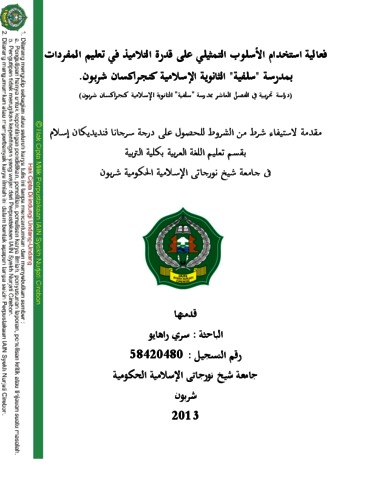 سري راهايو, (2013) فعالية استخدام الأسلوب التمثيلي على قدرة التلاميذ في تعليم المفردات بمدرسة "سلفية" الثانوية الإسلامية كنجراكسان شربون. )دراسة تجريبية في الفصل العاشر بمدرسة "سلفية" الثانوية الإسلامية كنجراكسان شربون(. Bachelor thesis, IAIN Syekh Nurjati Cirebon.
