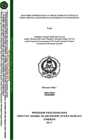 Satori Ilyas, (2011) KONTRIBUSI PERBANKAN SYARIAH TERHADAP TINGKAT PERTUMBUHAN EKONOMI DAN KEMISKINAN DI INDONESIA. Bachelor thesis, IAIN Syekh Nurjati Cirebon.