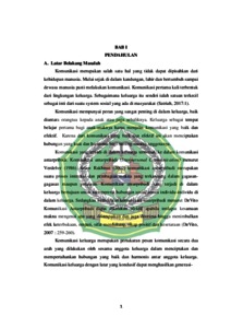 ABSTRAK Dwi Endah Lestari 1708302099 : MANAJEMEN KONFLIK DALAM HUBUNGAN ANTARPRIBADI PADA DRAMA SERI MY UNFAMILIAR FAMILY Drama seri My Unfamiliar Family merupakan drama bertema keluarga yang mempertanyakan arti keluarga seiring keringnya komunikasi dan kedekatan emosi antar masing-masing anggota keluarga, serta menceritakan usaha yang mereka lakukan untuk menyelesaikan konflik tersebut. Rumusan masalah pada penelitian ini yakni (a) Bagaimana struktur komunikasi antarpribadi pada komunikasi keluarga berdasarkan alur awal, alur tengah dan alur akhir dalam drama seri korea My Unfamiliar Family? (b) Bagaimana karakter tokoh dinarasikan dalam drama seri korea My Unfamiliar Family? (c) Bagaimana gaya manajemen konflik yang terdapat dalam drama seri korea My Unfamiliar Family? Adapun penelitian ini bertujuan untuk mengkaji bagaimana struktur komunikasi antarpribadi, karakter tokoh dan gaya manajemen konflik melalui narasi dalam drama My Unfamiliar Family. Metode yang digunakan dalam penelitian ini adalah analisis narasi (narrative analysis) yang bersifat kualitatif deskriptif. Objek penelitian ini terletak pada narasi atau potongan adegan dan dialog yang mengandung karteristik keefektifan komunikasi antarpribadi serta gaya manajemen konflik yang terdapat dalam drama My Unfamiliar Family. Teknik pengumpulan data menggunakan observasi, dokumentasi dan Fgd. Analisis data menggunakan analisis narasi model Tvzetan Todorov. Hasil dari penelitian ini berdasarkan teori Tvzetan Todorov, Hubungan dalam keluarga pada alur awal cukup baik, dengan belum ditemukannya sikap keterbukaan dan sikap positif yang dilakukan oleh anggota keluarga dan belum adanya gaya manajemen konflik kolaborasi sebagai gaya paling baik untuk menyelesaikan konflik. Pada alur tengah, hubungan dalam keluarga mulai terjalin baik dengan ditemukannya keseluruhan karakteristik keefektifan komunikasi antarpribadi serta adanya kelima gaya manajemen konflik. Dan pada alur akhir drama My Unfamiliar Family, sudah mengambarkan keberhasilan keluarga ini dalam memperbaiki tatanan komunikasinya yang dibuktikan dengan bertahannya kelima karakteristik keefektifaan komunikasi antarpribadi dan sudah tidak lagi ditemukan gaya manajemen konflik kompetisi dan akomodasi yang biasa ditandai dengan sikap mengalah, perdebatan atau pun sikap ingin menang sendiri. Serta terdapat 6 karakter tokoh dalam drama My Unfamiliar Family, dengan tokoh utama yakni Kim Eun Hee (pahlawan) serta tokoh pendukung diantaranya Kim Eun Joo (pengirim), Kim Ji Woo (ayah putri), Kim Sang Sik (penjahat), Lee Jin Sook (putri) dan Park Chan Hyuk (penderma). Kata Kunci : Komunikasi Antarpribadi, Manajemen Konflik, Narasi, Drama Korea