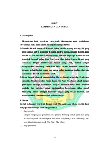 ABSTRAK Analisis Pesan Dakwah Dengan Metode Mauidzah Hasanah Dalam Film Ajari Aku Islam (Pendekatan Semiotika Charles Sanders Pierce) Khoirul Ummah 1708302054 Penelitian ini dilatar belakangi dari film “Ajari Aku Islam” film religi yang dirilis pada 17 Oktober 2019 ini cukup menarik untuk di bahas, karena film yang diangkat dari kisah nyata. Film yang menceritakan pemuda keturunan Tionghoa Medan Kenny yang jatuh hati pada seorang wanita muslim bernama Fidya yang berketurunan Melayu Medan. Film yang menyajikan banyak nilai islam yaitu salah satunya metode dakwah yang terkandung dalam film tersebut sehingga Kenny begitu tetarik untuk mempelajari islam. Puncak konflik dari film terjad ketika Kenny dan Fidya mulai saling menyukai satu sama lain namun dihadapkan dengan perbedaan budaya dan agama. Pertanyaan dalam penelitian ini adalah, (a) bagaimana metode dakwah mauidzah hasanah dengan pendekatan semiotika caharles sanders pierce dalam film ajari aku islam ?, (b) bagaimana pesan dakwah mauidzah hasanah tersampaikan dengan baik melalui pendekatan semiotika Charles sanders pierce dalam film ajari aku islam ?. Penelitian ini bertujuan untuk mengetahui metode dakwah mauidzah hasanah. Dengan menggunakan pendekatan semiotika Charles Sanders Pierce untuk menjawab rumusan masalah penelitian, dan untuk mengetahui bagaimana pesan dakwah mauidzah hasanah tersampaikan dengan baik. Metode yang digunakan peneliti adalah dengan menggunakan jenis penelitian kualitatif deskriptif dengan pendekatan semiotika Charles sanders pierce, teknik pengumpulan datanya menggunakan metode observasi (pengamatan), dokumentasi. Sumber data primer berupa video film ajari aku islam, data sekunder berasal dari buku, jurnal dll. Teknik analisis data dengan model segitiga Charles. Dengan demikian kesimpulan dalam penelitian ini dapat menjawab rumusan masalah yaitu: 1) Metode dakwah mauidzah dalam film Ajari Aku Islam bukan hanya dakwah dengan memberikan nasihat yang baik, namun dengan mengingatkan, melarang, memberikan buku bacaan (kitabah), memberikan teladan, memberi hadiah, sopan dan santun dalam perkataan adalah salah satu dari metode dakwah mauidzah hasanah.. 2) Pesan dakwah Muidzah hasanah dalam film ini ditunjukan melalui, Pendekatan semiotika Charles Sanders Pierce adalah dengan pentingnya menjaga kehormatan, dengan membaca buku dapat merubah perilaku dan maindset untuk meninggalkan kemungkaran, tidak mudah terpancing emosi, larangan berduaan dengan yang bukan mahrom, dan mempertahankan keimanan sampai ajal menjemput. Kata kunci : Metode Dakwah, Pesan Dakwah dengan Metode Mauidzah Hasanah, semiotika Charles Sanders Pierce
