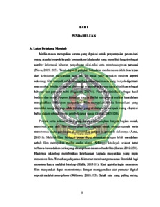 ABSTRAK “REPRESENTASI PESAN MORAL DALAM FILM TILIK DI YOUTUBE KARYA WAHYU AGUNG PRASETYO (ANALISIS SEMIOTIKA CHARLES SANDERS PIERCE).” Yasmine Muntazah. NIM: 1708302034 Film Tilik menceritakan perjalanan serombongan ibu-ibu yang menaiki truk bak terbuka untuk menjenguk (tilik) Bu Lurah yang tengah dirawat di Rumah Sakit. Film ini tidak hanya mengisahkan bagaimana realitas kehidupan masyarakat Indonesia, terkhusus kalangan ibu-ibu yang dianggap cenderung sering menelan informasi mentah-mentah begitu saja. Namun dalam film ini juga terkandung sebuah pesan yang hendak disampaikan pembuat film kepada khalayak. Berdasarkan latar belakang yang dipaparkan tersebut, maka pertanyaan penelitian yang diajukan oleh penulis adalah (1) Bagaimana penggambaran scene yang terkait dengan pesan moral melalui penerapan sinematografi di film Tilik? (2) Bagaimana representasi pesan moral dalam film Tilik menurut semiotika Charles Sanders Pierce?. Penelitian ini bertujuan untuk mengetahui penggambaran scene yang terkait dengan pesan moral dalam penerapan sinematografi di film Tilik dan mengetahui pesan moral pada film Tilik dengan menggunakan analisis semiotika Charles Sanders Pierce. Pada penelitian ini metodologi penelitian yang digunakan adalah penelitian kualitatif dengan pendekatan semiotika dan sinematografi. Sumber data primer dan sekunder, dalam penelitian ini meliputi teknik pengumpulan data menggunakan metode observasi dan dokumentasi. Adapun teknik analisis data yang digunakan adalah analisis semiotika dengan menggunakan pendekatan Charles Sanders Peirce. Analisis data dilakukan dengan mengklasifikasi teori segitiga makna yang terdiri dari tiga elemen yaitu tanda (sign), objek (object), dan interpretant. Berdasarkan hasil analisis penelitian dan pembahasan, dapat disimpulkan bahwa dalam film Tilik, penulis menemukan penggambaran scene yang terkait dengan pesan moral melalui penerapan sinematografi yaitu menggunakan lima teknik pengambilan gambar berupa Extreme Long Shot (ELS), Medium Long Shot (MLS), Medium Close Up (MCU), Medium Shot (MS), Close Up (CU) dan ditemukan representasi pesan moral di film Tilik yaitu berupa solidaritas, menjaga lisan, larangan fitnah, tabayyun dalam menerima berita, sabar, anjuran tidak menyuap dan menerima suap, tolong menolong, dan saling berbagi. Kata Kunci: Film Tilik, Semiotika, Semiotika Charles Sanders Pierce, Pesan Moral
