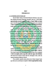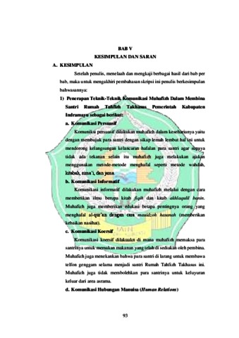 ABSTRAK MOH FAYYAZ MUMTAZ / 1708302067 “PENERAPAN TEKNIK-TEKNIK KOMUNIKASI MUHAFIZH DALAM MEMBINA SANTRI RUMAH TAHFIZH TAKHASUS PEMERINTAH KABUPATEN INDRAMAYU DI DESA SINGARAJA KEC. INDRAMAYU KAB. INDRAMAYU”. Keberhasilan muhaffzh dalam menyampaikan materi sangat tergantung pada kelancaran interaksi antara muhafizh dan santrinya. Ketidak lancaran komunikasi membawa akibat terhadap pesan yang disampaikan muhafizh. Ketidaklancaran komunikasi antara muhaffidz dan santri akan mengalami hambatan dalam meraih keberhasilan. Untuk mencapai keberhasilan interaksi dalam proses belajar mengajar diperlukan adanya komunikasi yang baik antara muhaffidz dan santri sehingga dapat tercapainya tujuan pengajaran dan pendidik. Demikian juga dengan keberhasilan santri dalam menghafal Al Qur’an sangat berhubungan erat dengan kualitas komunikasi yang terjalin antara muhaffidz dengan santri itu sendiri. Berdasarkan latar belakang masalah maka pertanyaan yang di ajukan peunulis yaitu: 1) Bagaimana Teknik Komunikasi Muhaffizh Dalam Membina Santri Rumah Tahfidz Takhassus Pemerintah Kabupaten Indramayu di Desa Singaraja Kec. Indramayu Kab. Indramayu. 2) Bagaimana keberhasilan Teknik Komunikasi Muhaffizh Dalam Membina Santri Rumah Tahfidz Takhassus Pemerintah Kabupaten Indramayu di Desa Singaraja Kec. Indramayu Kab. Indramayu. Penelitian in berutujuan untuk mengetahui Penerapan Teknik Komunikasi Muhaffizh Dalam Membina Santri Rumah Tahfidz Takhassus Pemerintah Kabupaten Indramayu di Desa Singaraja Kec. Indramayu Kab. Indramayu. Serta mengetahui keberhasilan Teknik Komunikasi Muhaffizh Dalam Membina Santri Rumah Tahfidz Takhassus Pemerintah Kabupaten Indramayu di Desa Singaraja Kec. Indramayu Kab. Indramayu. Penelitian ini merupakan penelitian kualitatif deskriptif, dengan menggunakan pendekatan studi kasus, menggunakan sumber data primer dan sekunder, adapun teknik pengambilan datanya observasi, wawancara mendalam dan dokumentasi. Hasil nya penerapan daripada teknik komunikasi dalam membina santrinya menggunakan empat teknik 1) Teknik Komunikasi Persuasif (muhafizh merayu lemah lembut serta mengajak santri gunakan metode-metode terkait hafalan) 2) Teknik Komunkasi Informatif (muhafizh edukasi melalui pembelajaran kitab dasar) 3) Teknik Komunikasi Koersif (larangan untuk tidak keluar asrama dan membawa telfon genggam) 4) Teknik Komunikasi Hubungan Manusia (muhafizh menganggap anak santrinya seperti halnya anaknya sendiri). Adapun keberhasilannya 1) santri lebih giat lagi dalam meghafal karena muhafizh mengajak dengan cara lemah lembut 2) santri mengetahui tata krama serta ilmu fiqih dasar 3) santri mentaati peraturan yang muhafizh tegakkan 4) santri merasa nyaman serta di perhatikan penuh sehingga hafalan berjalan dengan lancar. Kata Kunci : Teknik Komunikasi, Membina, Tahfizh, Santri, Muhafizh
