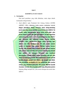 Syifa Alrahmah Alfarih, 1708202076, Implementasi Akad Tabarru’ Pada Layanan Asuransi Prudential Life Cabang Cirebon Ditinjau Dari Fatwa DSN MUI No. 53/DSN-MUI/III/2006”. Skripsi 2021. Pada saat ini, perkembangan dan pertumbuhan yang terjadi dalam lembaga-lembaga ekonomi dirasa sangan cepat. Semaraknya penerapan pada prinsip syariah dalam lembaga keuangan bank juga berdampak bagi lembaga keuangan bukan bank, termasuk didalamnya asuransi. Prudential merupakan salah satu perusahaan asuransi yang menerapkan prinsip syariah. Produk dalam Prudential syariah yaitu PRUlink Syariah Investor Account (PIA Syariah) dan PRUlink Syariah Assurance Account (PAA Syariah), yang terdapat perbedaan mengenai penerapan dan pengelolaan pada dana premi yang dibayarkan oleh para peserta. Dan dengan adanya fatwa DSN MUI tentang Akad Tabarru‟, maka peneliti tertarik untuk melakukan penelitian tentang Implementasi Akad Tabarru‟ Pada Layanan Asuransi Prudential Life Cabang Cirebon. Penelitian ini membahas tentang “Bagaimana Implementasi Akad Tabarru‟ Pada Layanan Asuransi Prudential Life Cabang Cirebon Ditinjau Dari Fatwa DSN MUI No. 53/DSN-MUI/III/2006”. Penelitian ini merupakan penelitian kualitatif yang dilakukan menggunakan metode penelitian lapangan (field research). Dengan metode pengumpulan data berupa observasi, wawancara, dan dokumentasi kemudian dianalisis menggunakan metode analisis dskriptif. Adapun hasil dari penelitian ini: 1) Akad yang digunakan pada produk PRUlink Syariah di Asuransi Prudential Life Cabang Cirebon adalah akad tabarru‟ dan akad Tijarah. Akad Tabarru‟ yaitu akad antara sesama pemilik polis/peserta dengan perusahaan Prudential yang disebut Wakalah bil Ujrah. Didalam akad Tabarru‟ ini peserta memberikan dana hibah yang digunakan untuk menolong dan membantu peserta lain yang terkena musibah. Dana Tabarru‟ dibukukan dalam rekening Tabarru‟ yang terpisah dengan rekening dana lainnya. Dan perusahaan akan mendapatkan fee dari pengelolaan dana konstribusi tersebut sebesar yang telah disepakati pada polis. Adapun tindakan yang dilakukan perusahaan Prudential jika terjadi kelebihan dana Tabarru‟ (Surplus Underwriting), yaitu akan menyimpan dana sebagai dana cadangan dan akan memberikan kelebihan dana tersebut kepada pemegang polis (Surplus Sharing). Sedangkan jika terjadi kekurangan dari dana Tabarru‟ (Defisit Underwriting) yang digunakan untuk dana pertanggungan atau klaim peserta, maka perusahaan Prudential akan meminjam dari perusahaan asuransi lain dengan akad Qardh (utang piutang) tanpa bunga, atau meminjam ke reasuransi. 2) Hasil penelitian diatas sudah sesuai dengan ketentuan dalam fatwa DSN MUI No. 53/DSNMUI/ III/2006 tentang Akad Tabarru‟. Kata Kunci: Implementasi, Akad Tabaruu‟, Fatwa MUI.