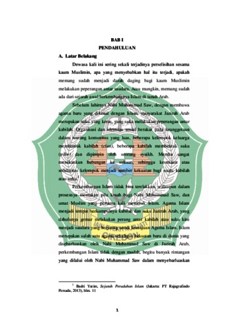 ABSTRAK KHOIRUL PATIHIN, 1708301015. “Kisah Perang Saudara Dalam Islam Dan Dampaknya Terhadap Perkembangan Politik Islam (Studi Kasus Perang Jamal Dan Perang Shiffin)”. Skripsi Jurusan Sejarah Kebudayaan Islam. Fakultas Ushuluddin Adab dan Dakwah Institut Agama Islam Negeri Syekh Nurjati Cirebon. Wafatnya Utsman bin Affan menjadi alasan riuh intrik dalam tubuh umat Islam, ditambah lagi dengan adanya kelompok para perusuh yang bersembunyi dalam pasukan Amirul Mukminn Ali yang terus menyebarkan fitnah. Yang pada akhirnya menyeret kedalam peperangan dan membuat terpecah belahnya umat Islam. Pembahasan dalam skripsi berfokus pada titik permasalahan: 1. Bagaimana proses terjadinya Perang Jamal dan siapa saja tokoh sentral yang terlibat? 2. Bagaimana proses terjadinya Perang Shiffin dan siapa saja tokoh sentral yang terlibat? 3. Bagaimana dampak dari perang tersebut terhadap perkembangan politik Islam?. Dengan titik fokus pada permasalahan ini akan menemukan apa yang melatarbelakangi terjadinya konflik internal dalam umat Islam yang akhirnya menyebabkan perpecahan antar umat Islam. Metode penelitian yang digunakan dalam penyusuan skripsi ini adalah pendekatan library research atau studi pustaka yang melalui empat tahapan: heuristik (Pengumpulan Data), verifikasi (Kritik Sumber), interpretasi (Penafsiran), historiografi (Penulisan Sejarah). Hasil dari penelitian ini menyimpulkan bahwa: Pertama Peristiwa Perang Jamal yang terjadi pada 35H, yang didasari oleh keinginan untuk menuntut para pengalir darah Utsman untuk segera diadili. Tokoh sentral yang terlibat dalam konflik ini adalah Ali bin Abi Thalib, Thalhah, Zubair bin Awwam, dan Aisyah. Kedua Peristiwa Perang Shiffin yang terjadi pada 36H, yang didasari oleh penolakan Muawiyah dan masyarakat Syam untuk melakukan bait kepada Ali. Tokoh sentral yang terlibat adalah Ali bin Abi Thalib, Muawiyah bin Abu Sufyan, Amr bin Ash, dan Abu Musya Al-Asy’ari. Ketiga Akibat konflik internal ini menyebabkan perubahan kondisi politik pada saat itu seperti: terpecahnya umat Islam kedalam beberapa golongan (Syiah, Sunni, dan Khawarij), berubahnya sistem pemerintahan, tidak adanya perluasan wilayah pada masa Ali. Kata kunci: Perang Jamal, Perang Shiffin, Para Perusuh