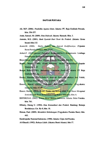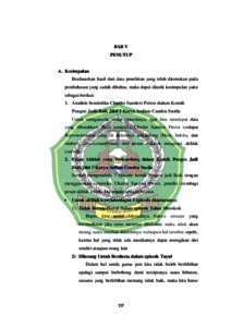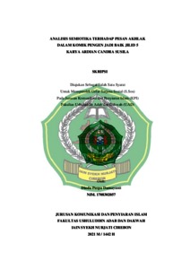 ABSTRAK ANALISIS SEMIOTIKA TERHADAP PESAN AKHLAK DALAM KOMIK PENGEN JADI BAIK JILID 5 KARYA ARDIAN CANDRA SUSILA. Dinda Puspa Damayanti 1708302057 Penelitian ini dilatar belakangi oleh semakin berkembangnya dunia perkomikan dan berkembangya dunia dakwah di Indonesia. Salah satunya yaitu buku komik Pengen Jadi Baik sebagai perantara media dakwah yang dikemas dengan bahasa yang ringan, mudah dimengerti tanpa adanya kesan menggurui. Komik ini dituukkan oleh pembaca mulai dari anak-anak usia 9-12 tahun hingga dewasa. Selain cara penyampaiannya yang ringan dan mudah dimengerti anakanak, komik ini juga banyak mengajari kita nilai-nilai agama yang diselipi ayat Al-Qur’an dan juga hadits. Rumusan masalah terkait penelitian: Bagaimana analisis pesan dakwah mengenai akhlak tersebut dalam kajian semiotika Sanders Pierce pada komik Pengen Jadi Baik jilid 5. Bagaimana pesan akhlak yang telah dikemas dan disampaikan dalam komik Pengen Jadi Baik jilid 5 karya Ardian Candra Susila Penelitian ini bertujuan untuk mengetahui makna isi pesan akhlak baik tercela dan terpuji dalam komik Pengen Jadi Baik jilid kelima dengan menggunakan kajian dari semiotika Charles Sanders Pirece yang kemudian dapat disimpulkan terkait pesan analisis akhlak di dalamnya. Penelitian ini menggunakan jenis penelitian kualitatif dengan menggunakan dua sumber data yaitu sumber data primer dan sekunder. Adapun untuk teknik pengumpulan datanya menggunakan metode observasi, wawancara (online) melalui email, dan dokumentasi. Sedangkan untuk teknik analisis datanya penelitian ini menggunakan semiotika dari Charles Sanders Pierce dengan meneliti sebuah representament (ikon, indeks, simbol), object, interpretant. Hasil penelitian yang didapatkan setelah menganalisis 7 episode komik Pengen jadi Baik jilid 5 ini dengan menggunakan semiotika Charles Sanders Pierce yang berupa representamen (ikon, indeks, simbol), object,interpretant. Peneliti membagi pesan akhlak tersebut menjadi akhlak tercela dan terpuji diantaranya. 1) Akhlak tercela diantaranya: Mudharat dalam episode Tobat Merokok, Berdusta dalam episode Tuyul, Berhutang dalam episode Utang Demi Gengsi, Lalai dalam episode Dinding Seluler 3. 2) Akhlak terpuji diantaranya: Bersyukur dalam episode Jamur Hitz, Bersabar dalam episode Susah dan senang, Menasehati pada episode Masuk Tipi. Kata Kunci: Semiotika, Analisis isi, Komik, Pesan Akhlak.