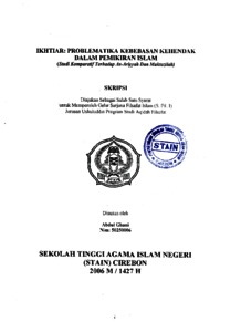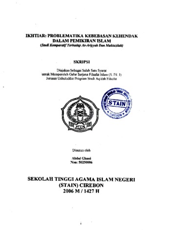 Abdul Ghani, (2006) Problematika Kebebasan Kehendak Dalam Pemikiran Islam (Studi Komparatif Terhadap As-Arriyah dan Muktazilah). Bachelor thesis, S1.Akidah Filsafat.