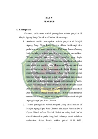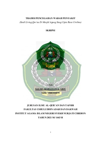 SALMA ROHADATUL AISY, (2021) TRADISI PENCEGAHAN WABAH PENYAKIT (Studi Living Qur’an Di Masjid Agung Sang Cipta Rasa Cirebon). Bachelor thesis, IAIN SYEKH NURJATI. S1 IAT.